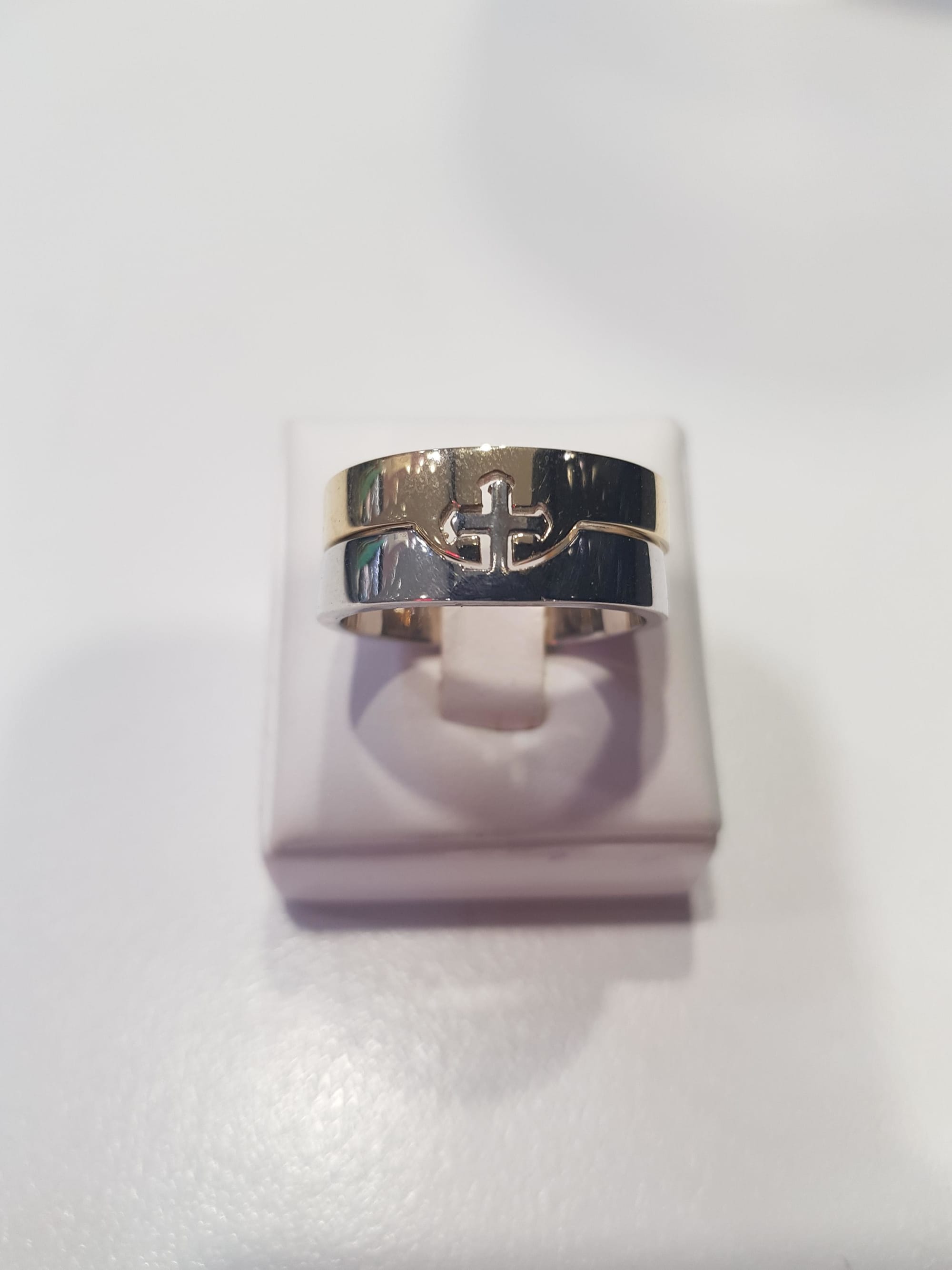 Solid Gold 2 piece ring with a cross joining the puzzle. Can be made in any type of gold as requested and even using your own gold (ask us for a free quote today) prices will vary depending on type of gold used. Price displayed is for 9ct yellow gold and 9ct white gold only.