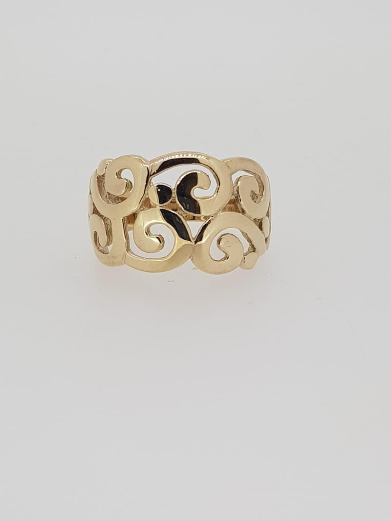This 9ct yellow gold scroll ring is a solid ring made to last! It is a stunning piece to add to your collection, We can make your own gold to make this piece as well, ask us for a free quote today.