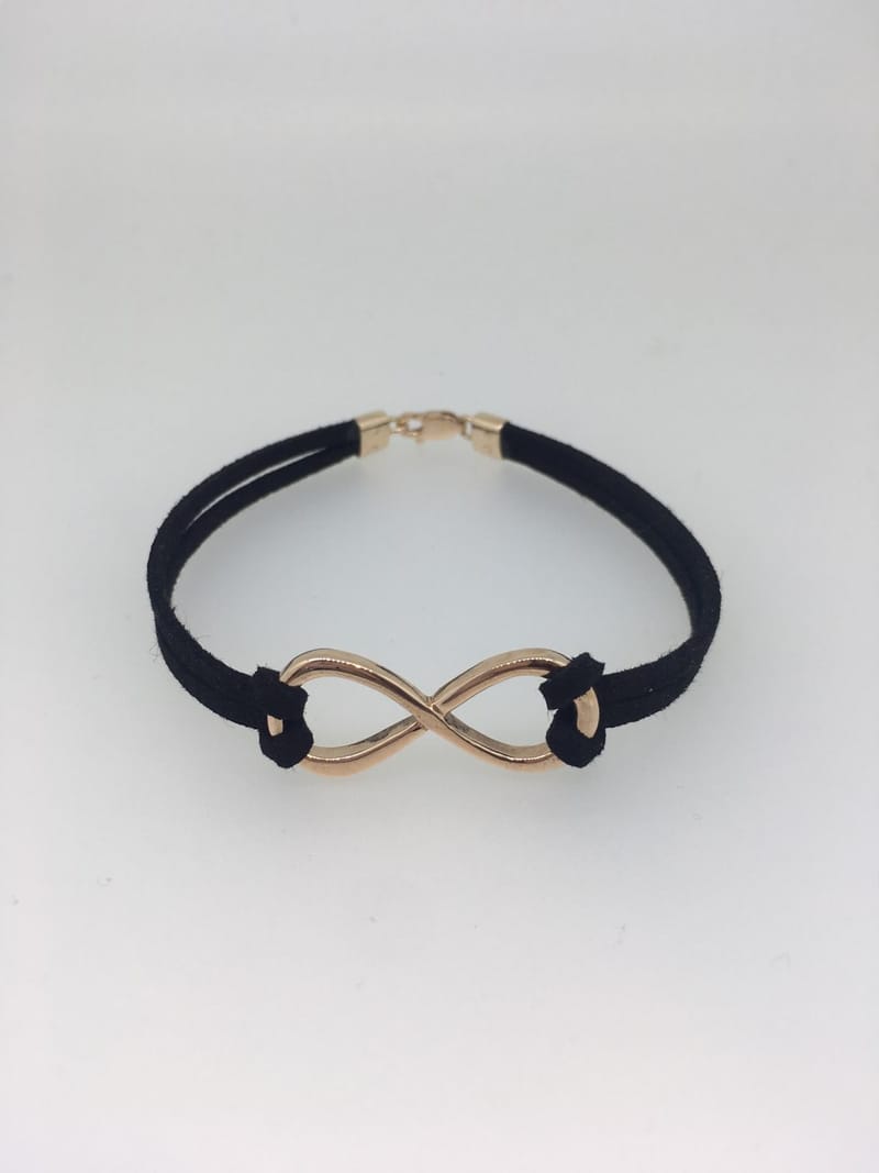 Solid Gold 9ct Infinity Bracelet with handmade finals and clasp. This piece is made to last for an infinity and can be altered into a necklace or adjusted to suit any bracelet type. We love the Leather and Rose Look it is unique and stylish. You can bring your own gold in to trade off the price or have a quote to make this in your own gold.