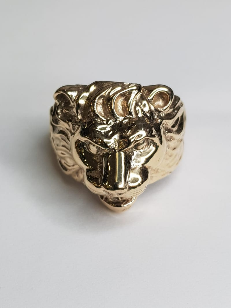 This is a majestic 9ct Yellow Gold ring with the face of a Lion. It is beautifully detailed and a must have for any lion/animal enthusiasts!