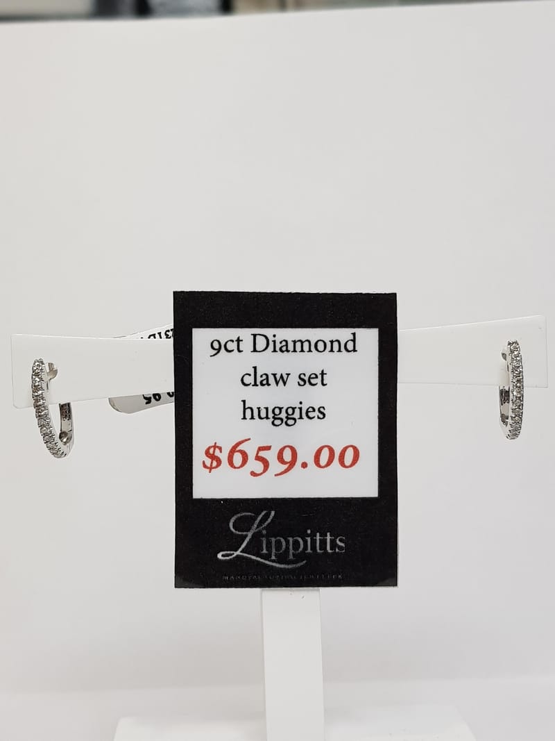 Gorgeous 9ct white gold .23ct tdw G/H SI Diamonds claw set in Huggies, The most comfortable style of earrings.