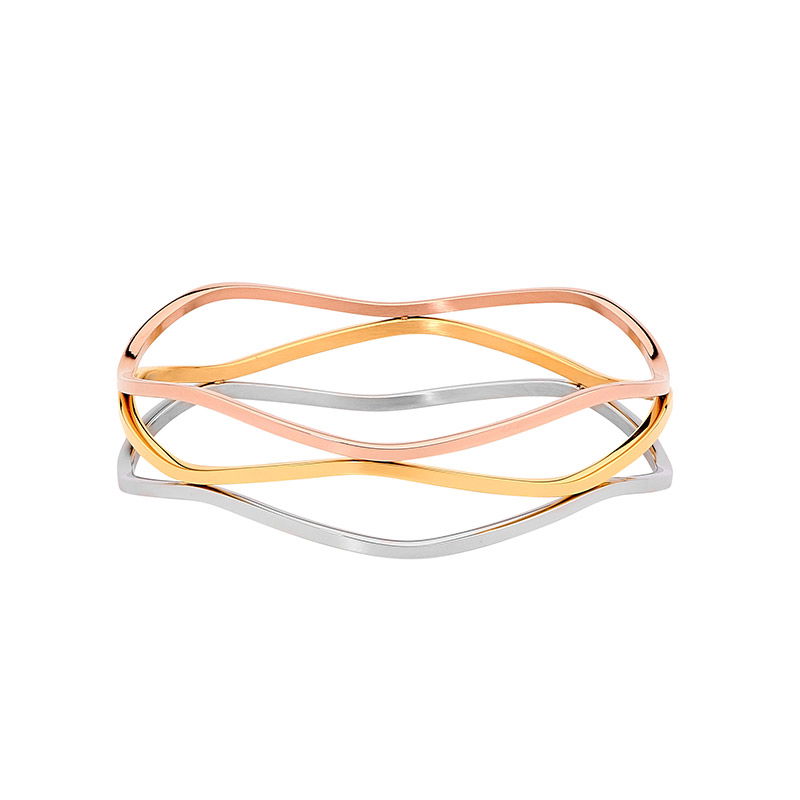 3 tone silver gold and rose coloured stainless steel bangle