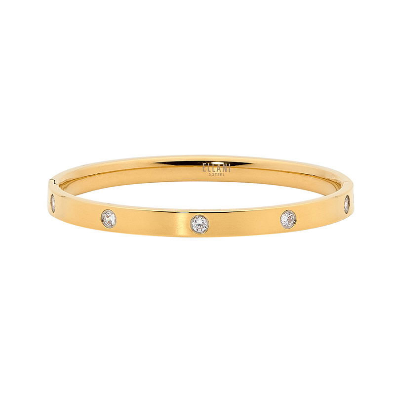 Gold coloured stainless steel stone set bangle
