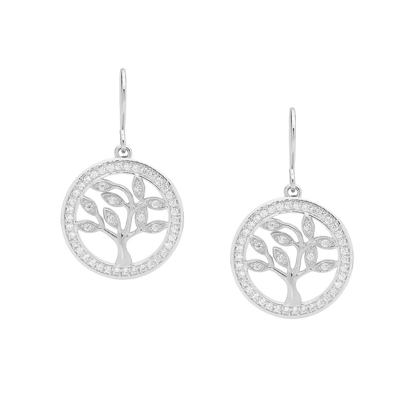 Sterling silver with rhodium protection tree of life drop earrings.