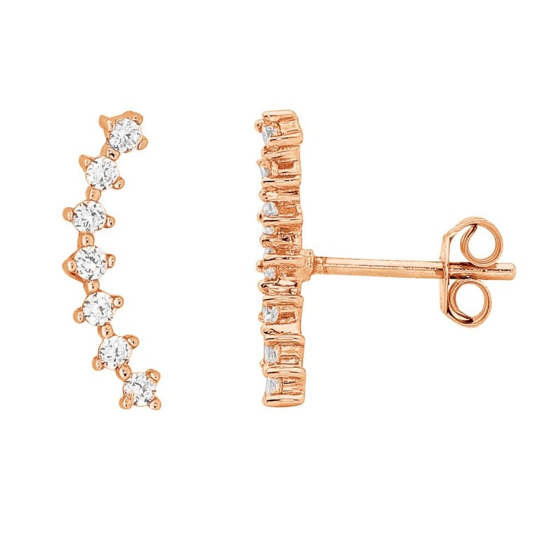 Sterling silver earwires rose coloured with white stones